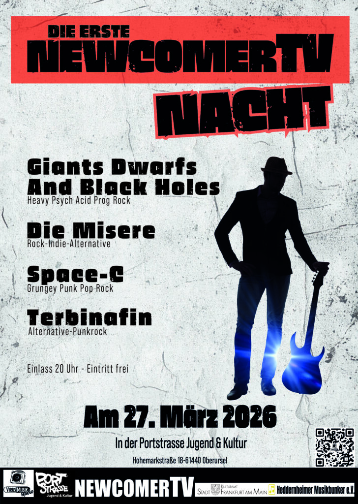 Am 27. März ist es wieder so weit. Der Frühling klopft an unsere Türen und wir präsentieren die erste NewcomerTV Nacht in diesem Jahr. Wir haben ein fantastisches Line-up an den  Start gebracht und versprechen, es wir laut und extrem tanzig. Die NewcomerTV Nächte sind eine Zusammenarbeit der Portstrasse Jugend & Kultur, NewcomerTV und dem Frankfurter VirusMusikRadio.
